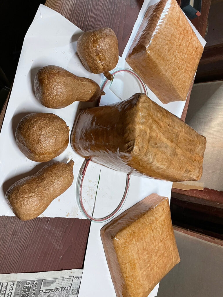 一閑張 2025 9/19 日誌 2025年9月19日 母(順子) が一閑張り(いっかんばり)制作中。 竹かご などに 和紙を 貼り重ね 乾燥させ。何度も柿渋を塗り重ねて完成です。水にも かなり強くなります。 それにしても、塗ったばっかりの 柿渋は臭いですネ🐽😱😖 日誌 よかったらシェアしてね! URLをコピーしました! URLをコピーしました! へぐり体験 代26回 作州の民芸 ものづくり展